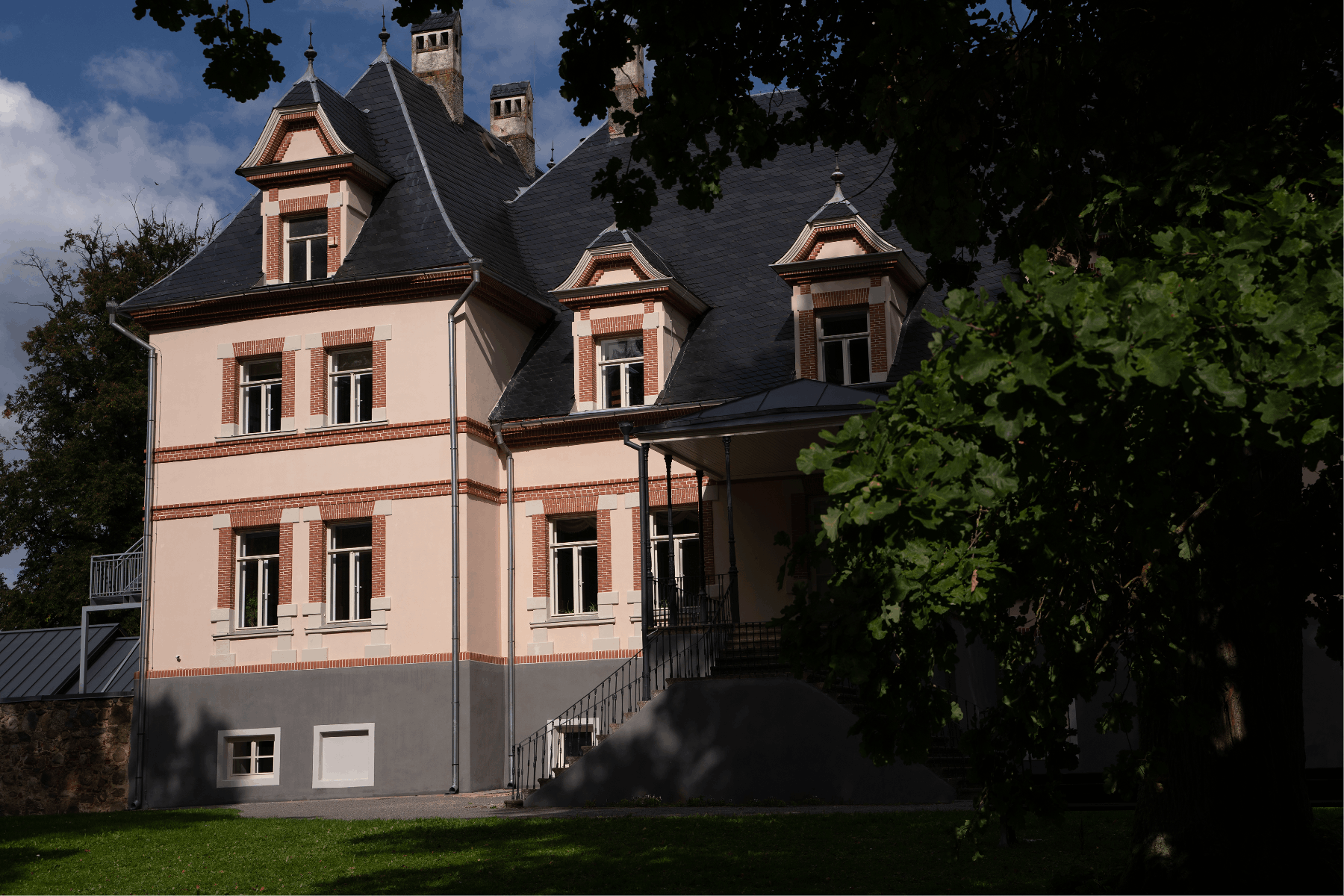 The historic Mooste Manor school building represents a significant example of early 20th- century Estonian manor architecture. The recent restoration focused on traditional lime- based facade systems — marble lime plaster and lime paint in a custom pink shade. These mineral-based finishes were specified for their compatibility with the historic masonry substrate while meeting contemporary performance standards for breathability and durability in heritage conservation.