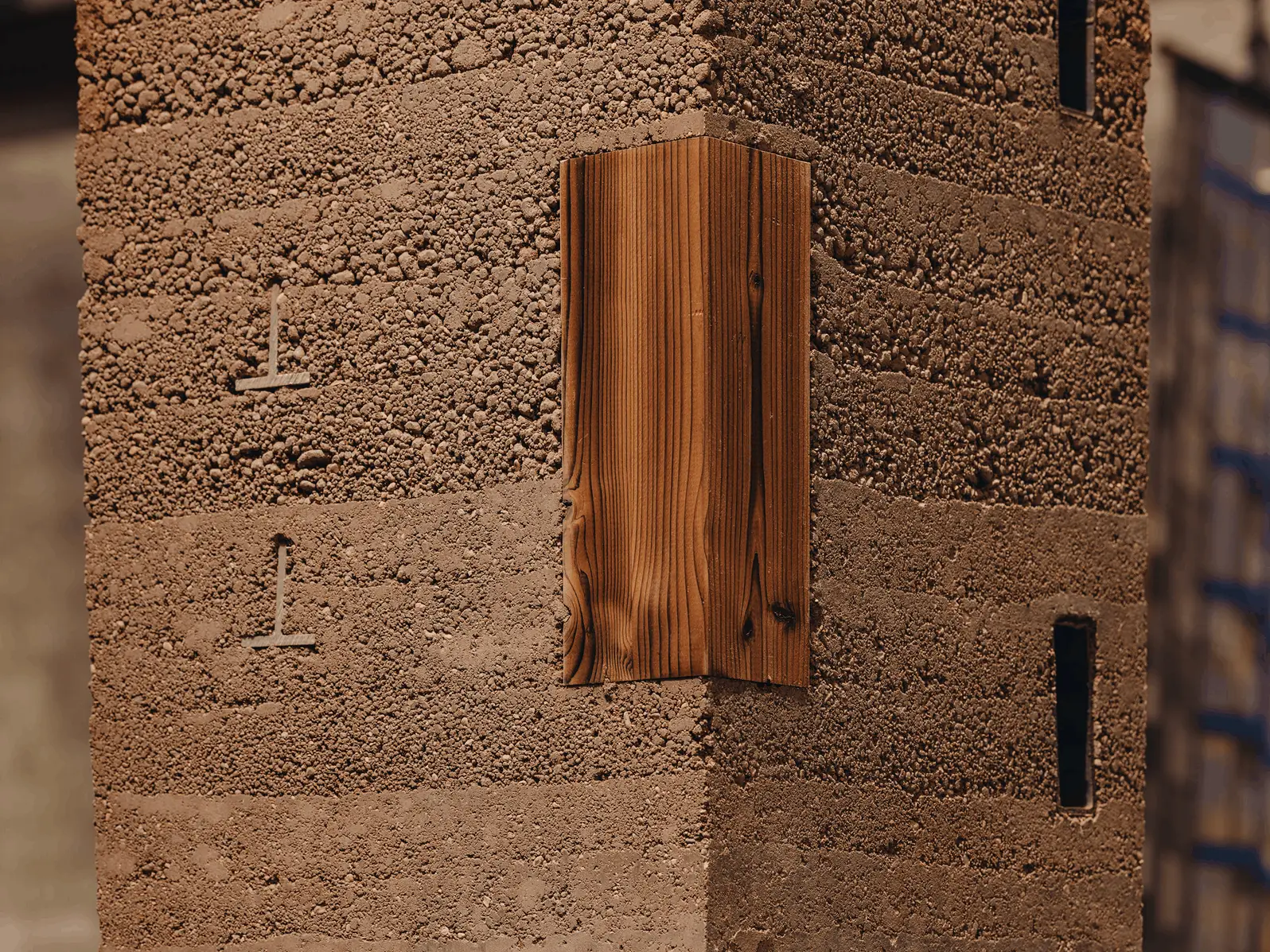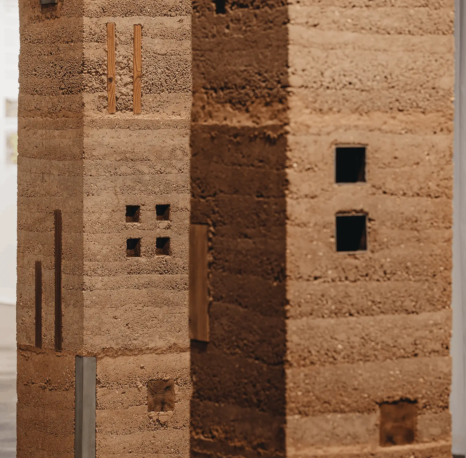 • Rammed Earth with Metal and Wood Fragments